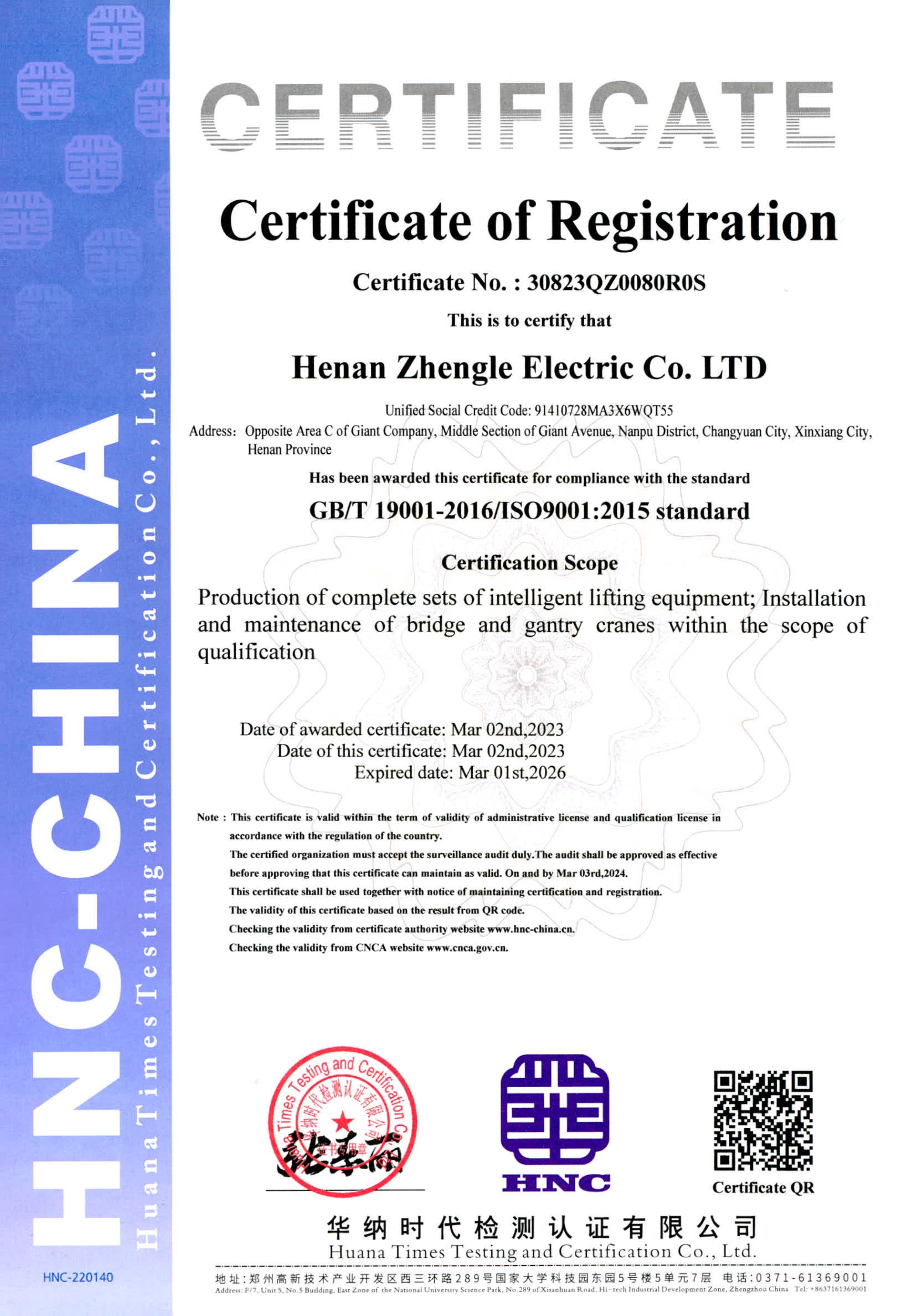 質(zhì)量管理體系認(rèn)證證書(shū)英文版